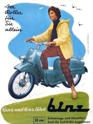 Nachkriegsbevölkerung dar, insbesondere da Automobile für viele unerschwinglich waren. Binz nutzte seine Erfahrung im Karosseriebau und entwickelte eigenständige, formschöne Roller und