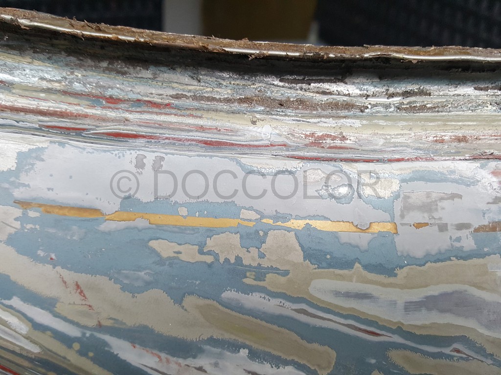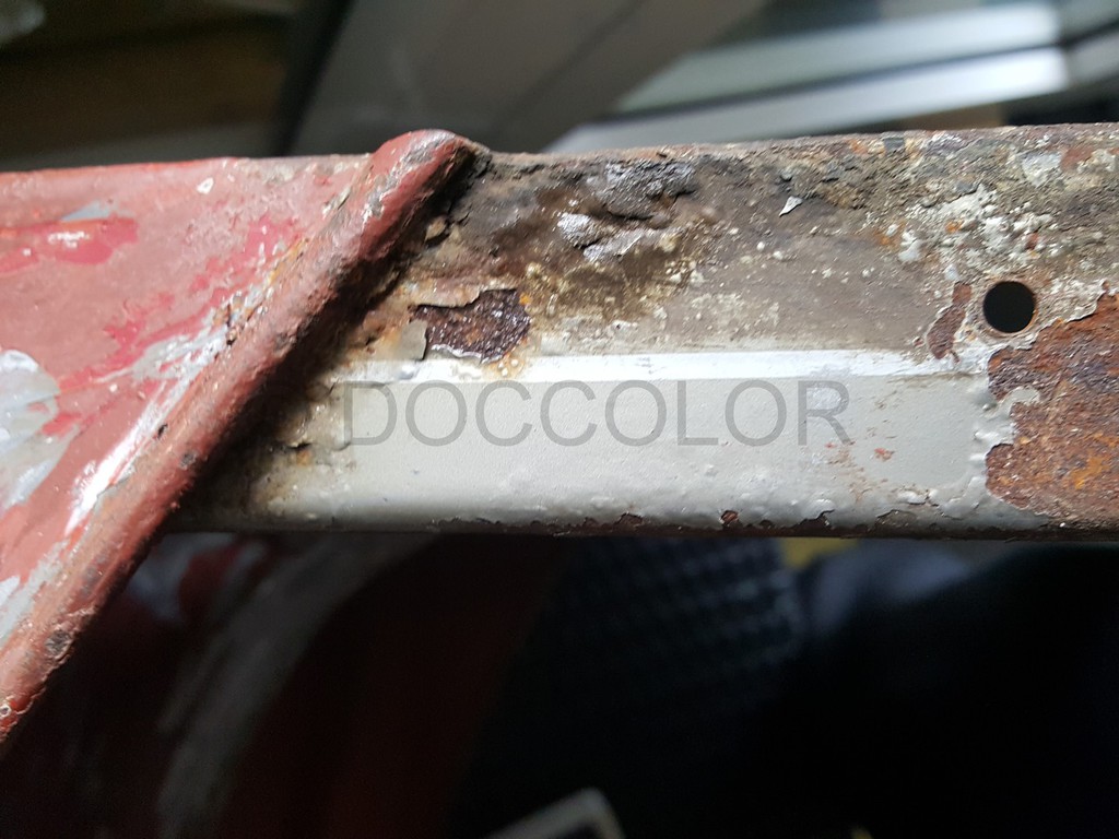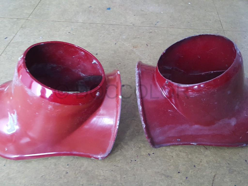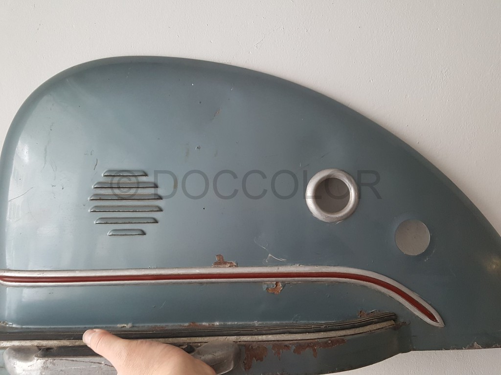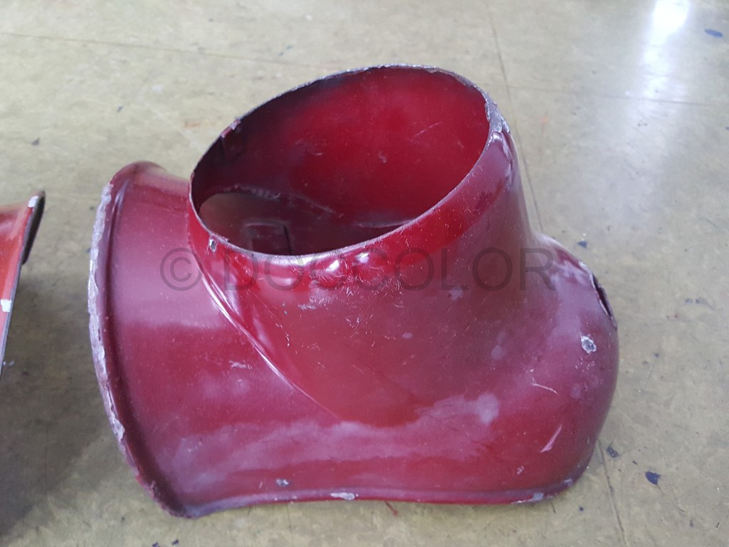 Hier unterhalb auf den Bildern sieht man das Maron hell der T55 1955. Vom Orangebraun....Blutrot zur schmalen Originallinie bis hin zu einer violettroten Ausschwemmung