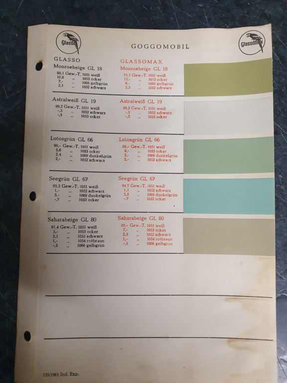 1300 GT ----- Canarigelb,Tannengrün,Nachtblau,Orange hell,Azurblau,Kirschrot hell,Astralweiss, Rubinrot,Silbermet.,Blaumet.