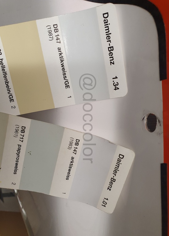 Zudem hat sich der Farbton teilweise extrem verändert, wenn unterschiedliche Weisstöne vorlackiert wurden. Das kann man gut erkennen, wenn man die Bilder in der Seitenansicht anschaut.