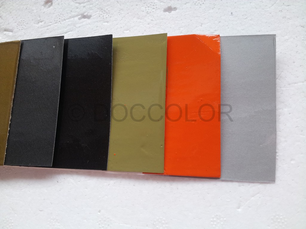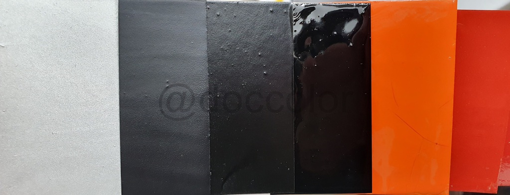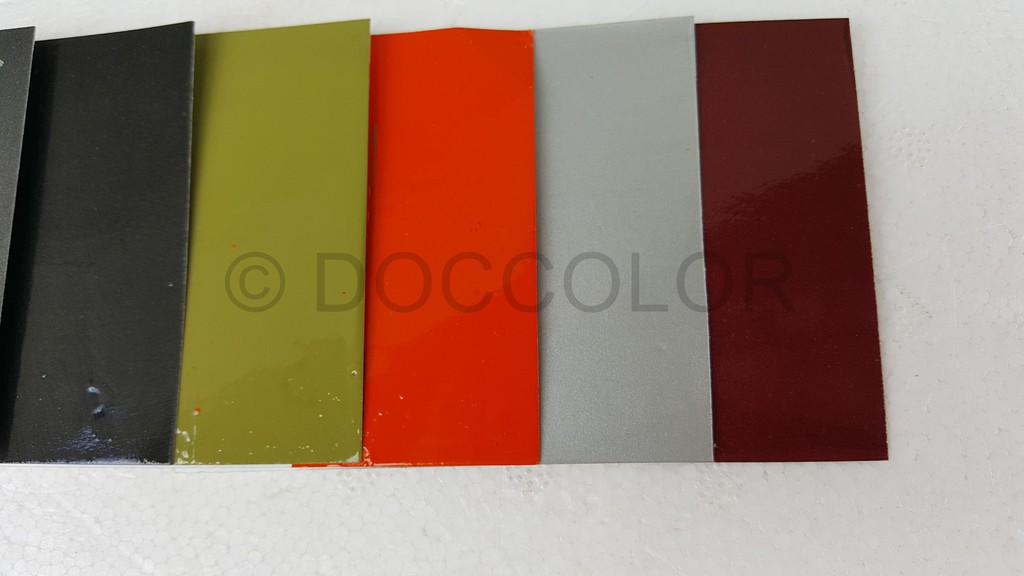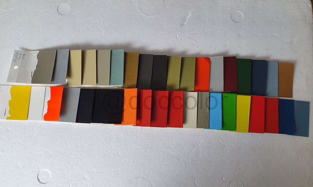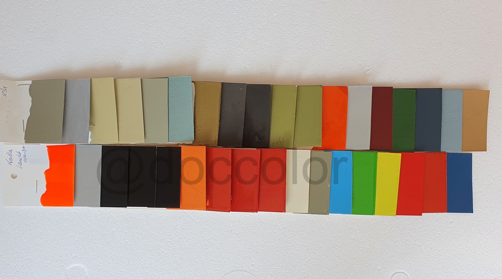 Abtöngelb(für Leuchtorange), Vorlack weiss(für Leuchtorange), Leuchtorange, AluMetalleffekt, Schwarz matt, Schwarz seidenmatt, Schwarz,