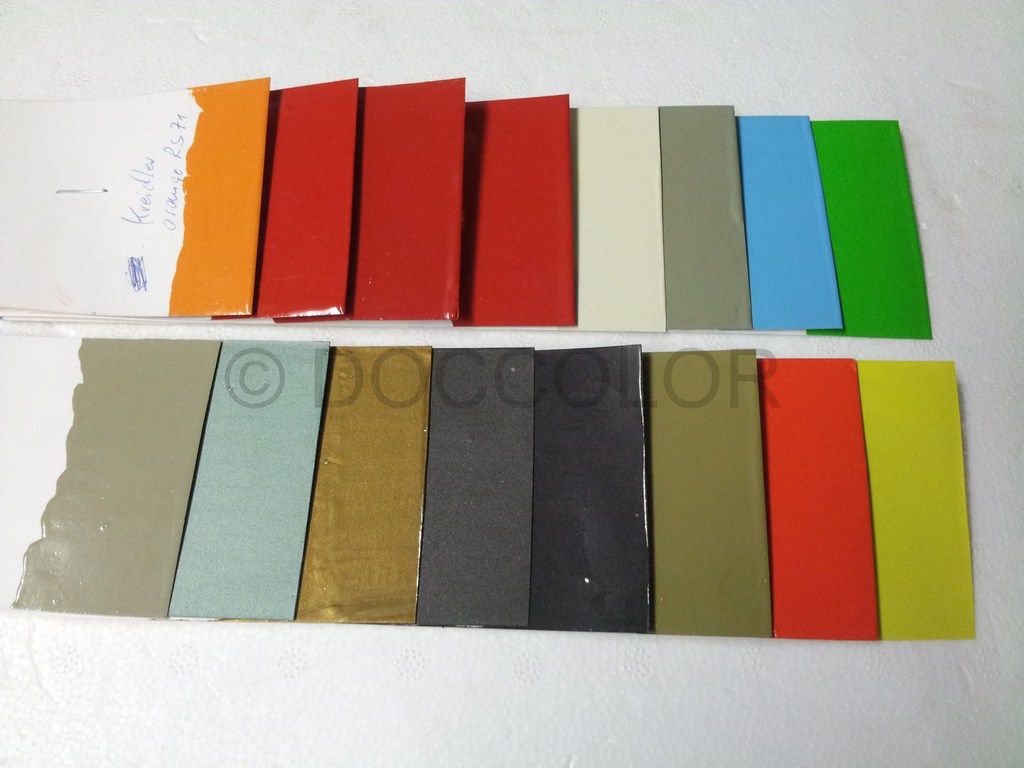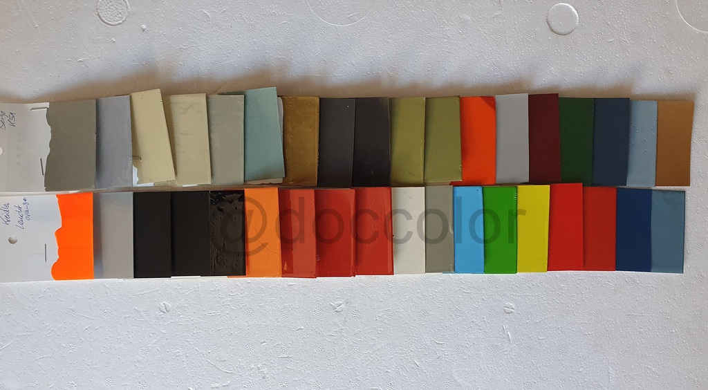 Antrazitmet, Fischsilberschwarzmet, Lindgrün, LindgrünM4, Rotorange(auch VanVeen), Silbermet., Burgundrotmet., Grünmetallic, Blaumet.MP1, HellblauMP1, GoldMF23,