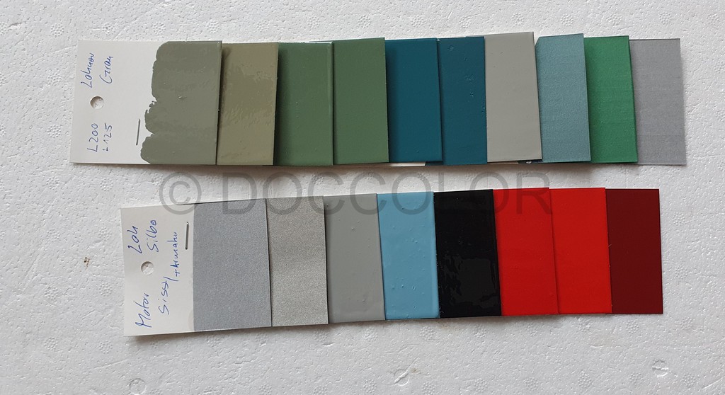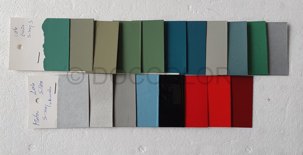 Grün(Sissy3), Grün(SissyS), Grau(L200), Sandgrau(125), Grün(L125), Grün(L200), Blau, Blau Patina, Hellgrau(L150), Hellgrau(Sissy3), Türkismet. hell, Grüntürkis, Silber