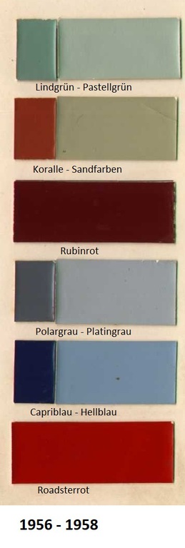 Farben von 56-58 ----- Rubinrot,Roadsterrot,Pastellgrün/Lindgrün,Sandfarben/koralle,