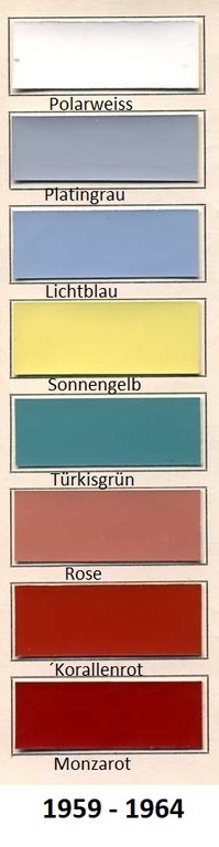 Farben von 58-64 ----- Polarweiss,Platingrau,Lichtblau,Sonnengelb,Türkisgrün,Rose,