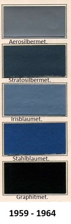 Korallenrot,Monzarot,Aerosilbermet.,Stratosilbermet.,Irisblaumet.,