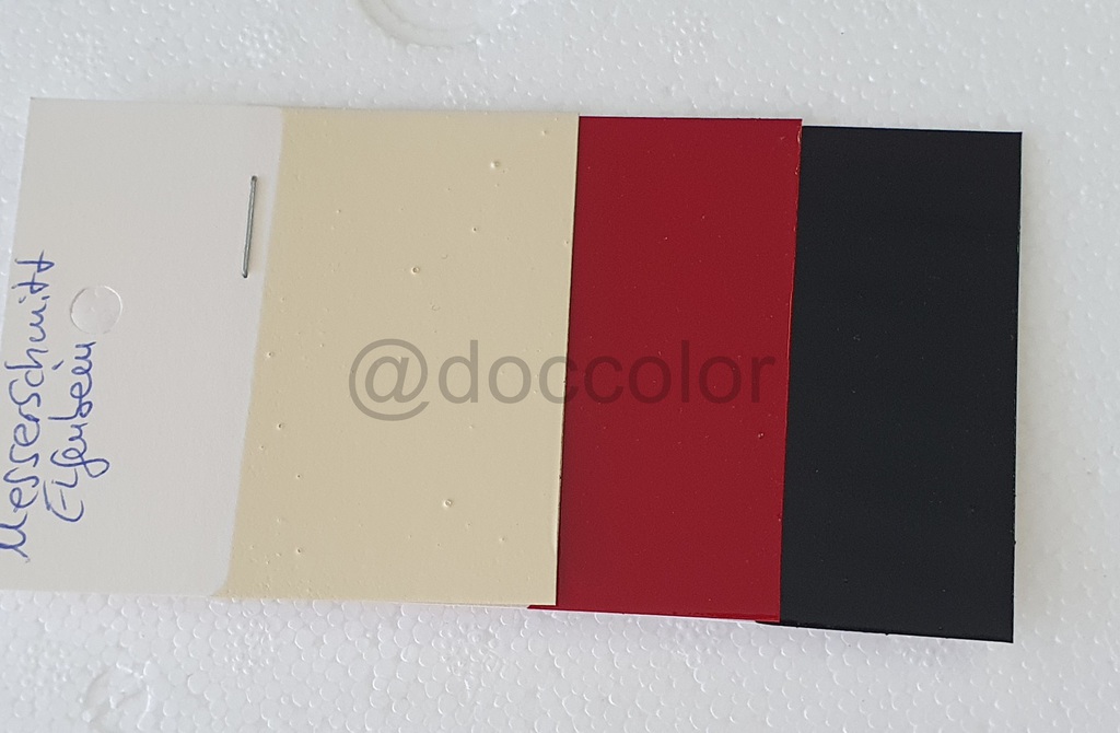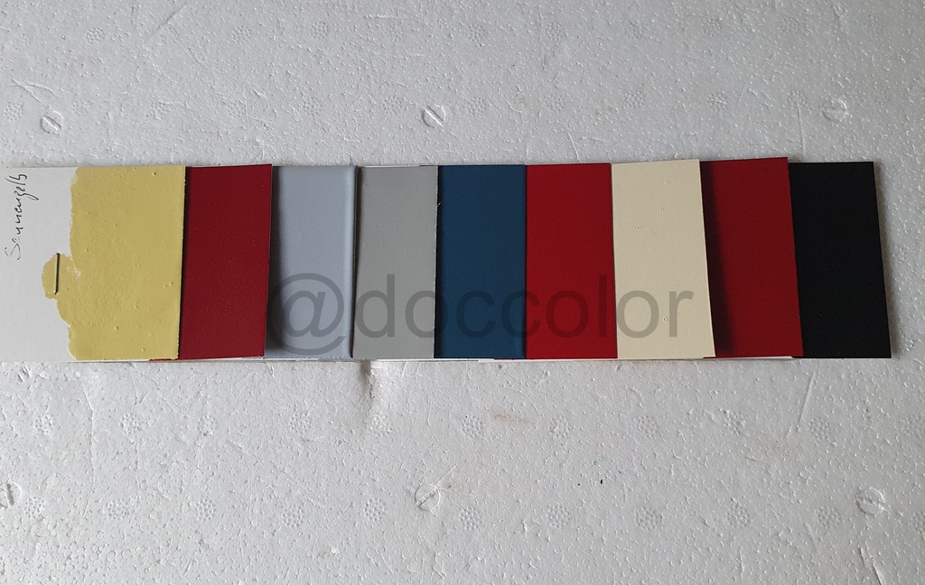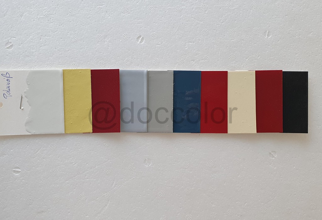 Polarweiss, Sonnengelb, Rubinrot, Polargrau, Grau, Blau, Rot V.1, Elfenbein, Rot V.2, Schwarz