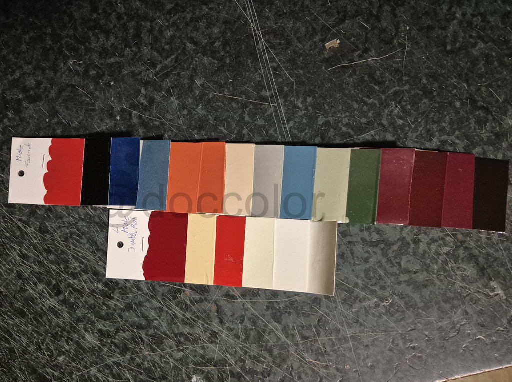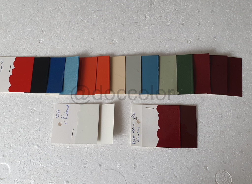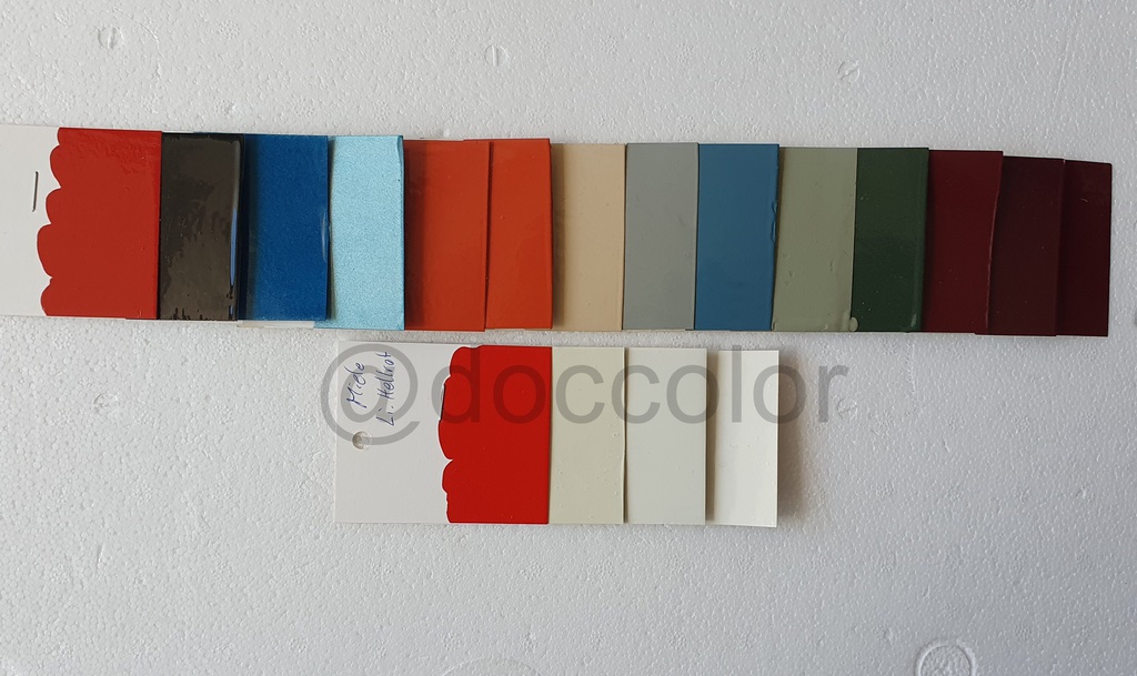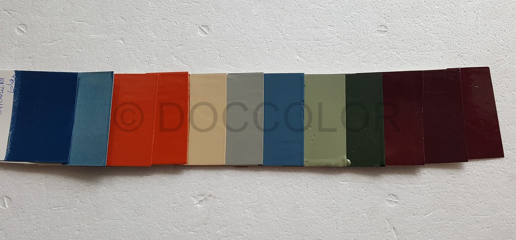 Feuerrot, Schwarz, Effektmittelblau, Effekthellblaumet., Korallenrot Patina, Korallenrot(K52), Sanddünenbeige(K52), Cabriograu, Delphinblau, Pappelgrau(K52), Grün(K52), Bordeauxrot(K50),