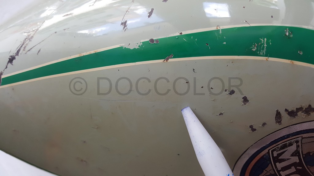 Fingernagel abkratzen, ist aber Original weil drüber die Weiss geflammte und goldene Linierung drauf ist.