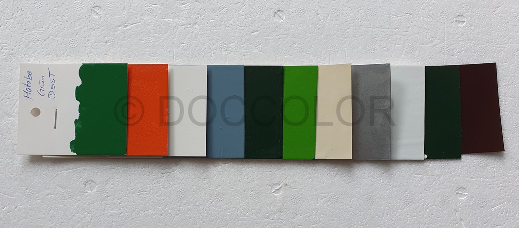 Bleu(Cady), Rouge(M1), Schwarz, Rotmet.(N150), Rotmet.(TM4), Grün(D55T), Orange(Minimoby), Weiss(Minimoby), Taubenblau, Laubgrün, Grellgrün, Elfenbein, Silber(Anbauteile MiniMoby), Weiss,