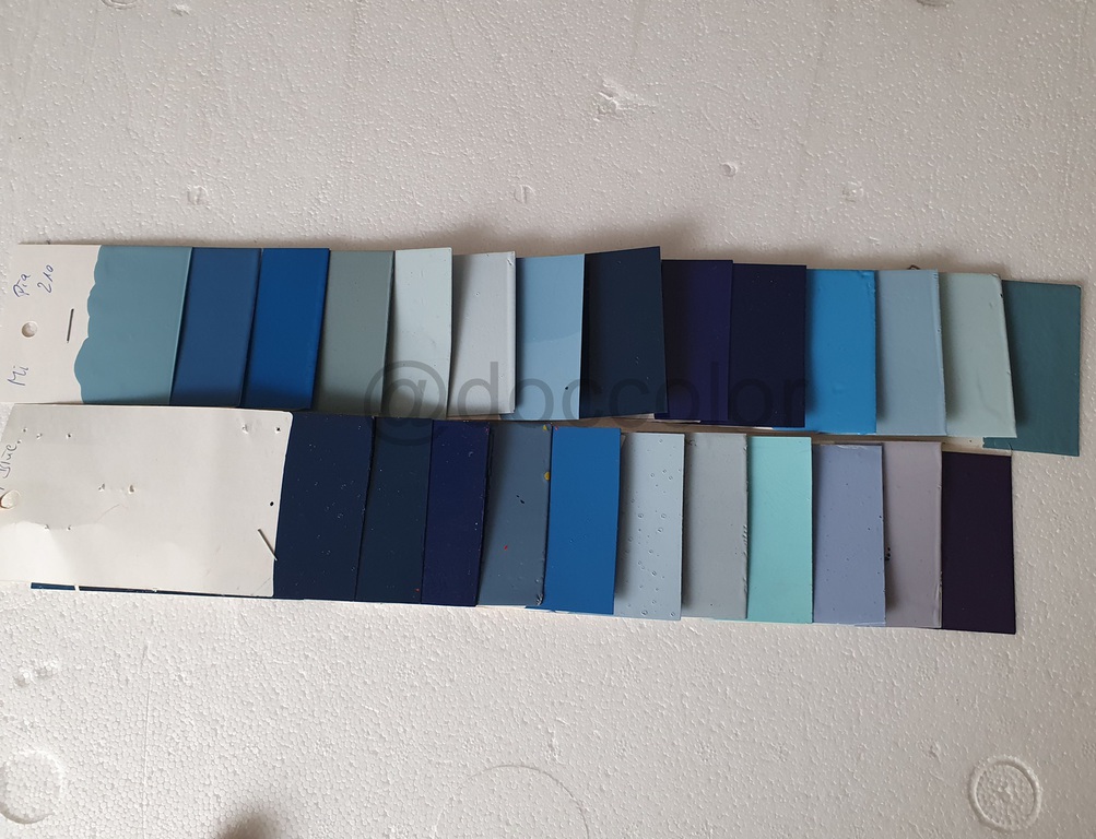 Blau: 210, 230, 238A, 723, 400hell, 400, 231A, 228, 1/7, 8/10, 420, Gulfblau, 440, 8/5,