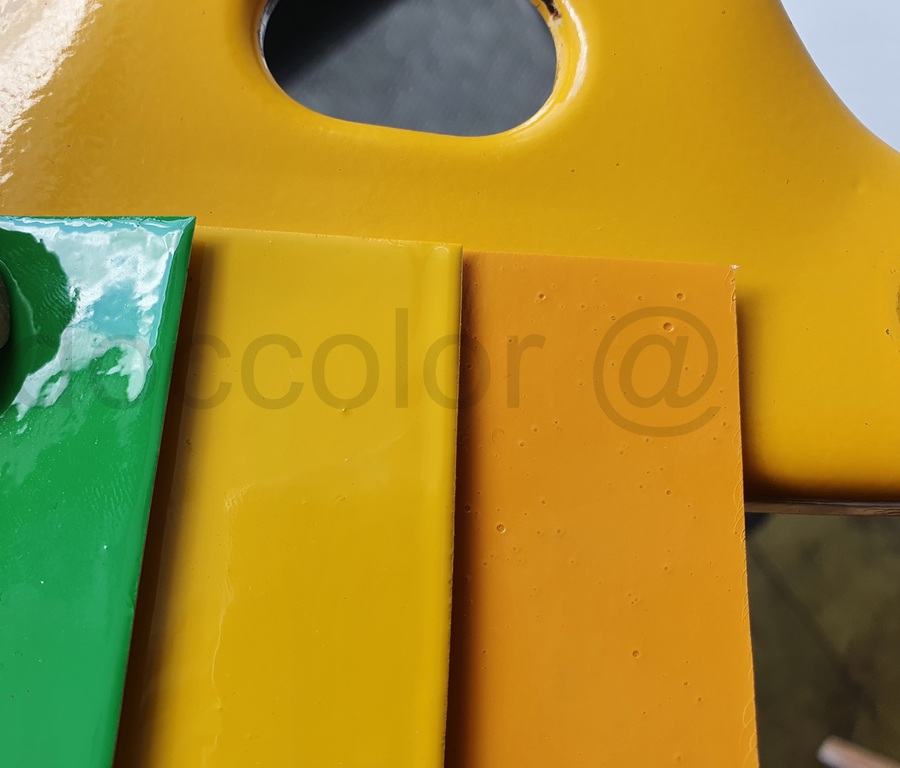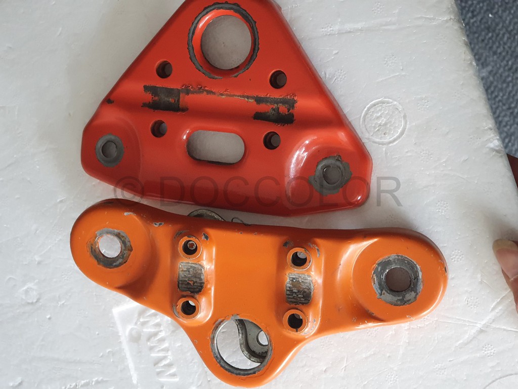 Bei Metallicfarben sind die Kunststoffteile wesentlich kräftiger/dunkler als die Blechteile beim gleichen Originalton.
