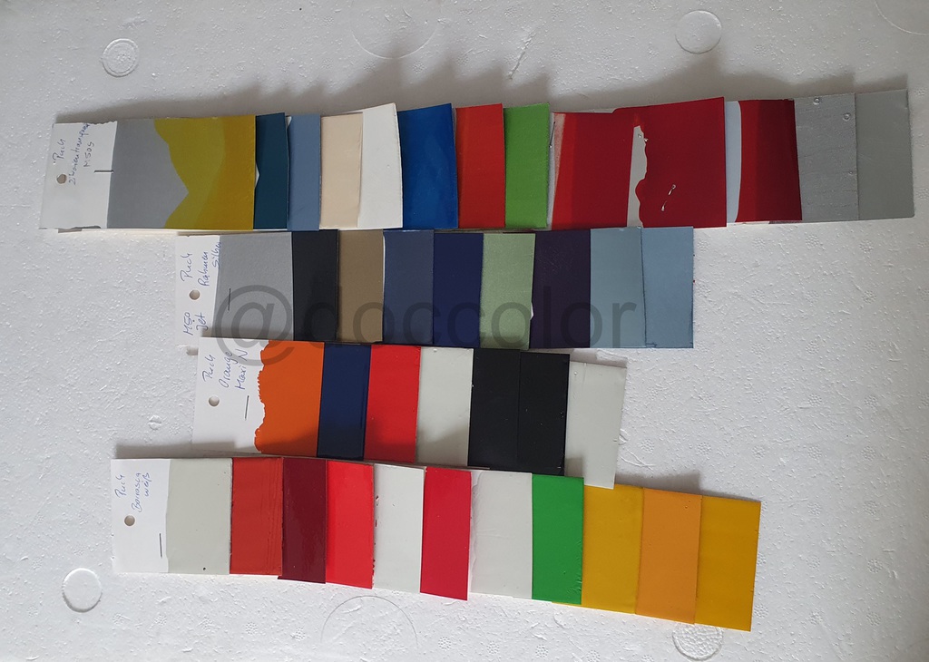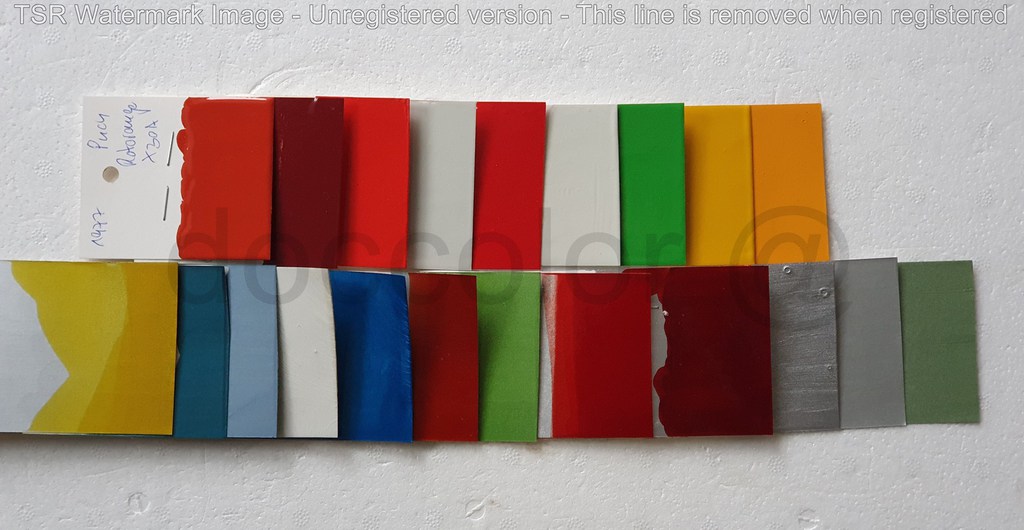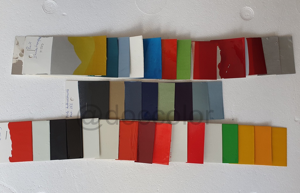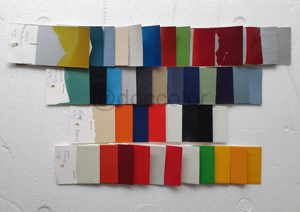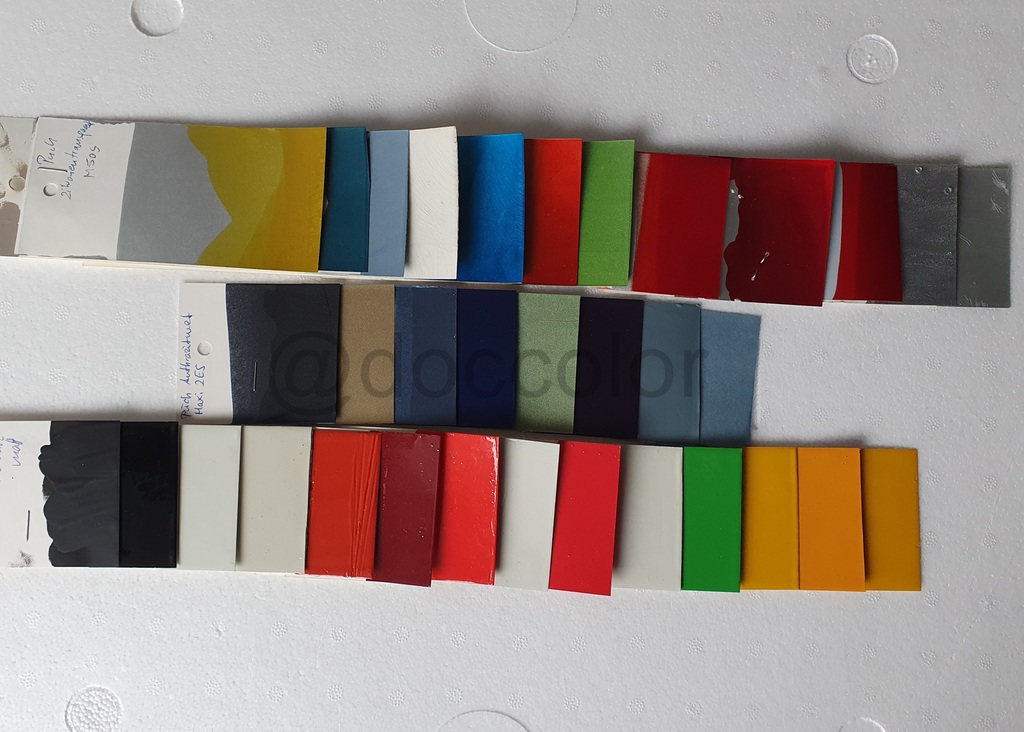 Borrascaweiss, Rotorange(X30), Rot(SGS), Rot(Cobra), Weiss(Maxi), Rot(Maxi), Perlelfenbein(Cobra80), Apfelgrün(Maxi), Postgelb, Gelb(Maxi), Gelb2(Maxi 2-25),