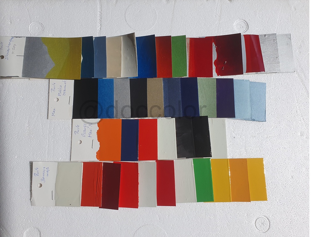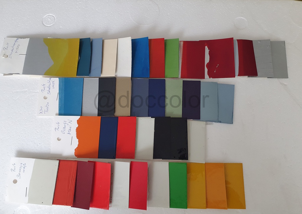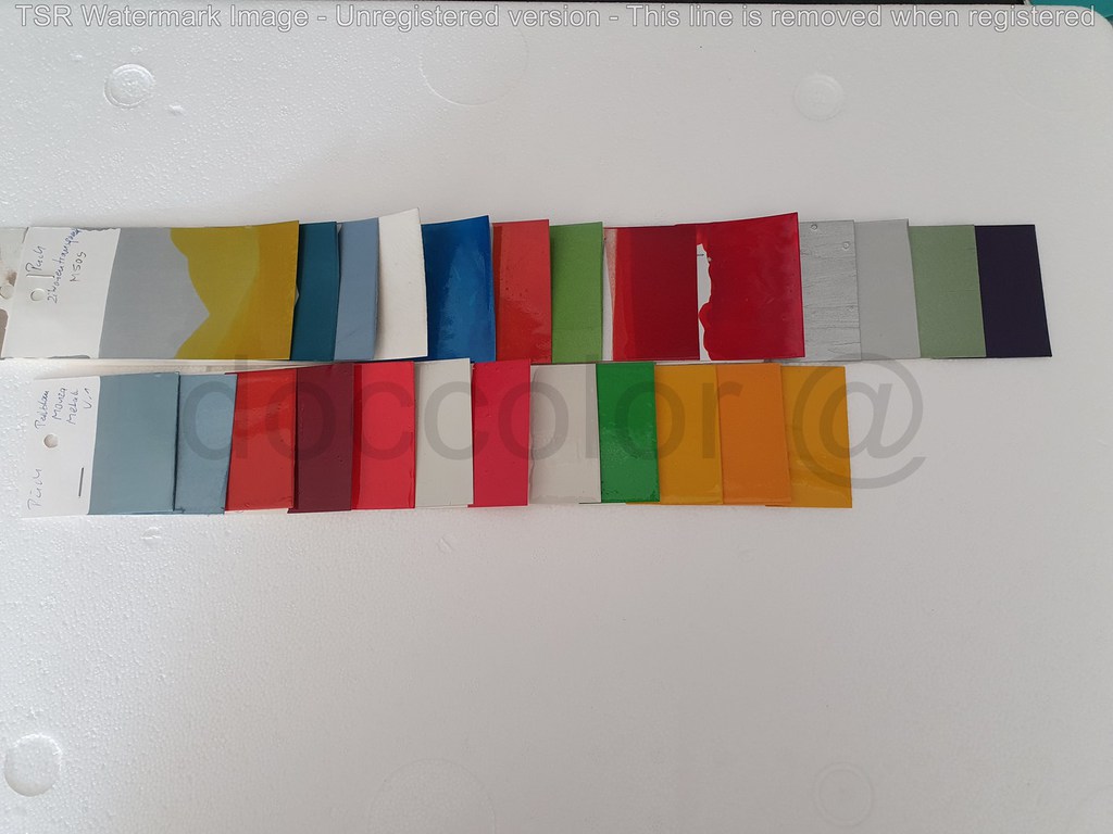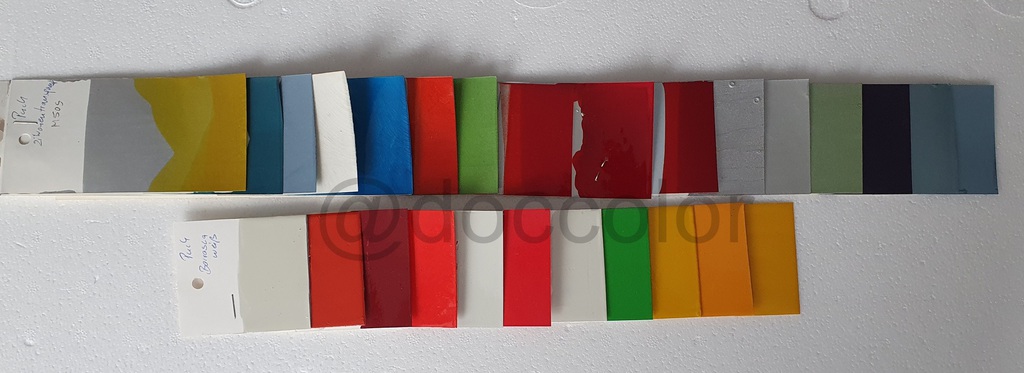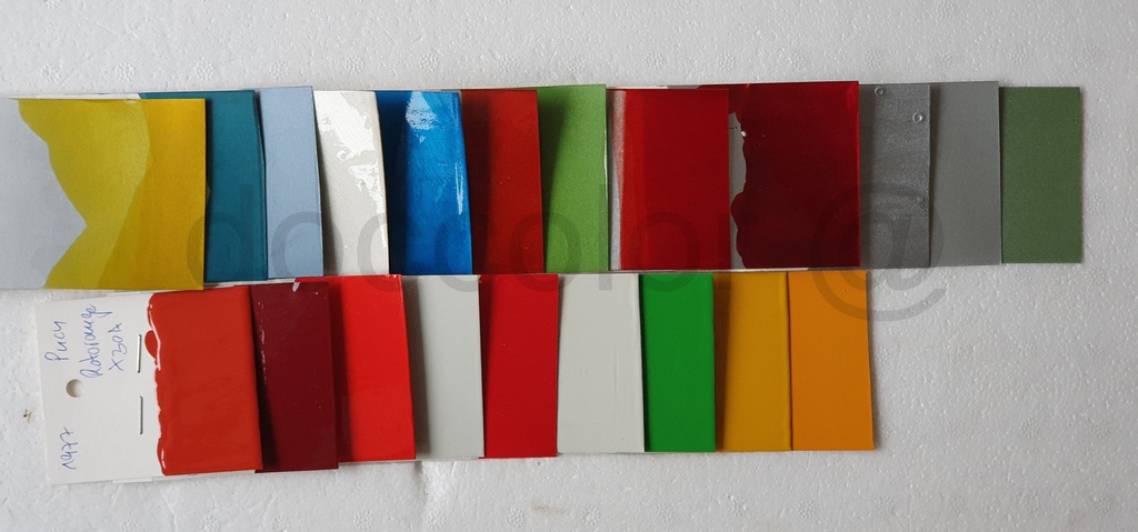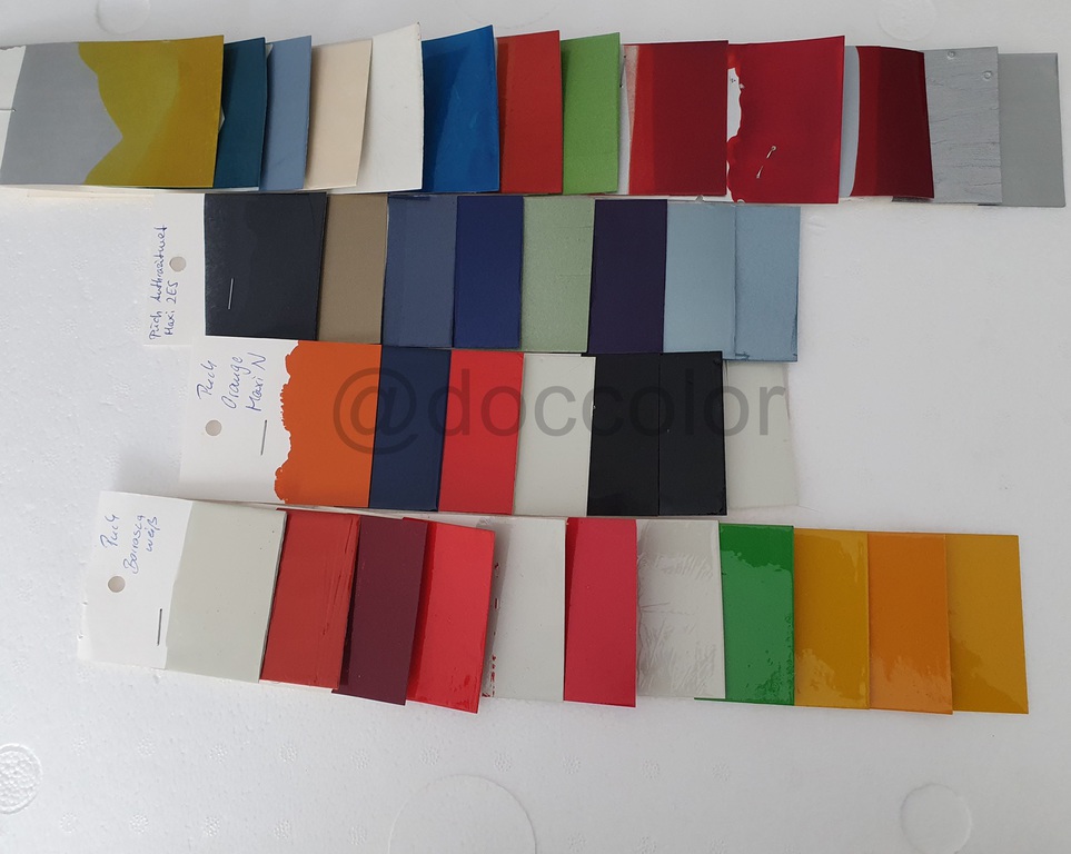 Borrascaweiss, Rotorange(X30), Rot(SGS), Rot(Cobra), Weiss(Maxi), Rot(Maxi), Perlelfenbein(Cobra80), Apfelgrün(Maxi), Postgelb, Gelb(Maxi), Gelb2(Maxi 2-25),