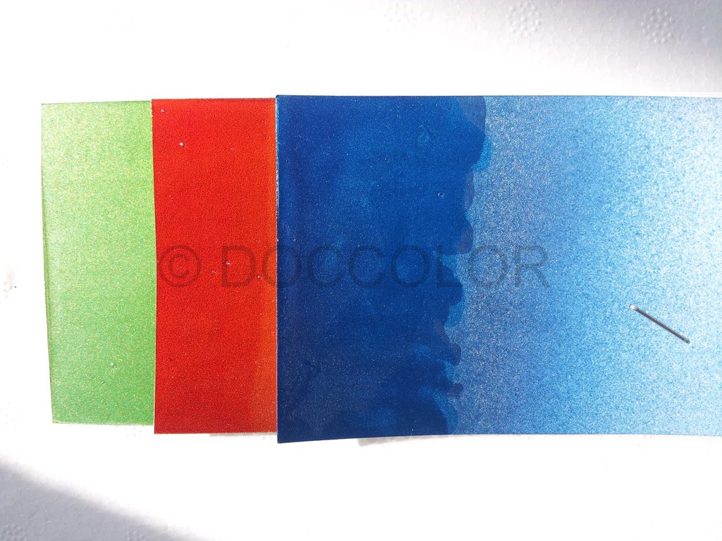Transparentrotmet.(alt) ist kräftiger, dunkler und satter als das Kirschrotmet.(Neu ab ca. 1984)