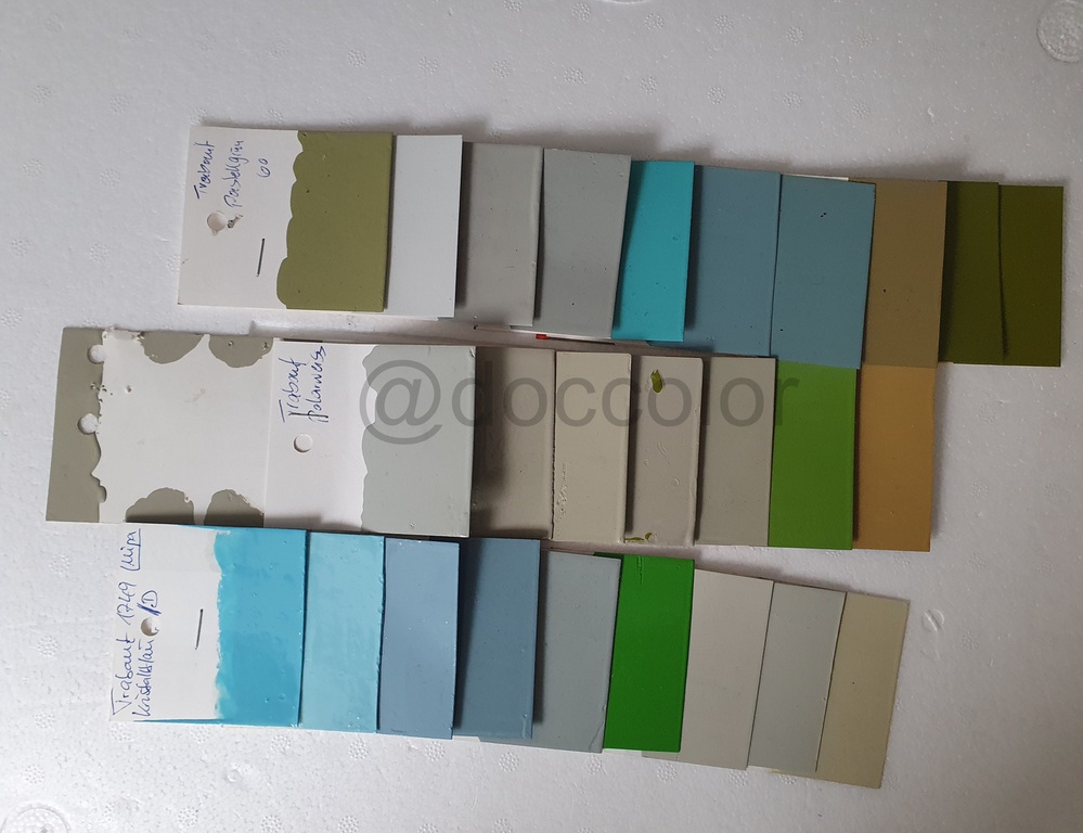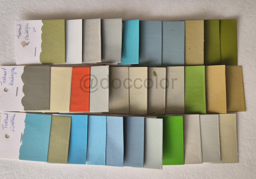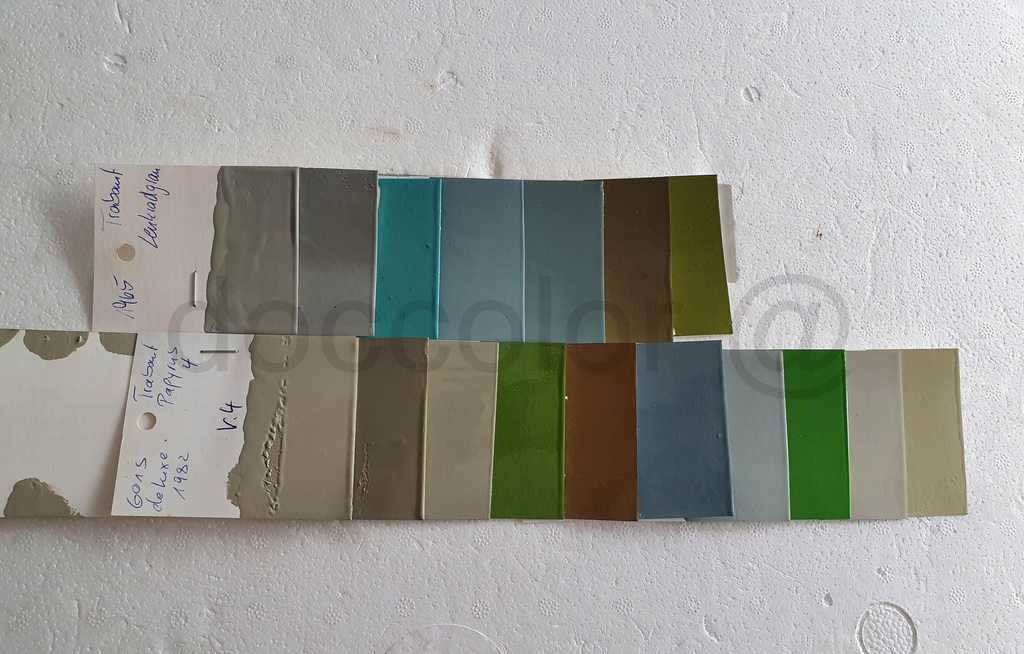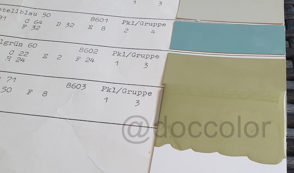 Papyrusweiss/Kristallblau(79-81),Baligelb(80-82),Champagnerbeige(80-88),Schilfgrün(81/82),