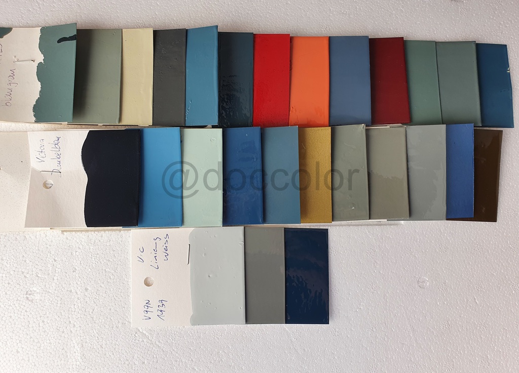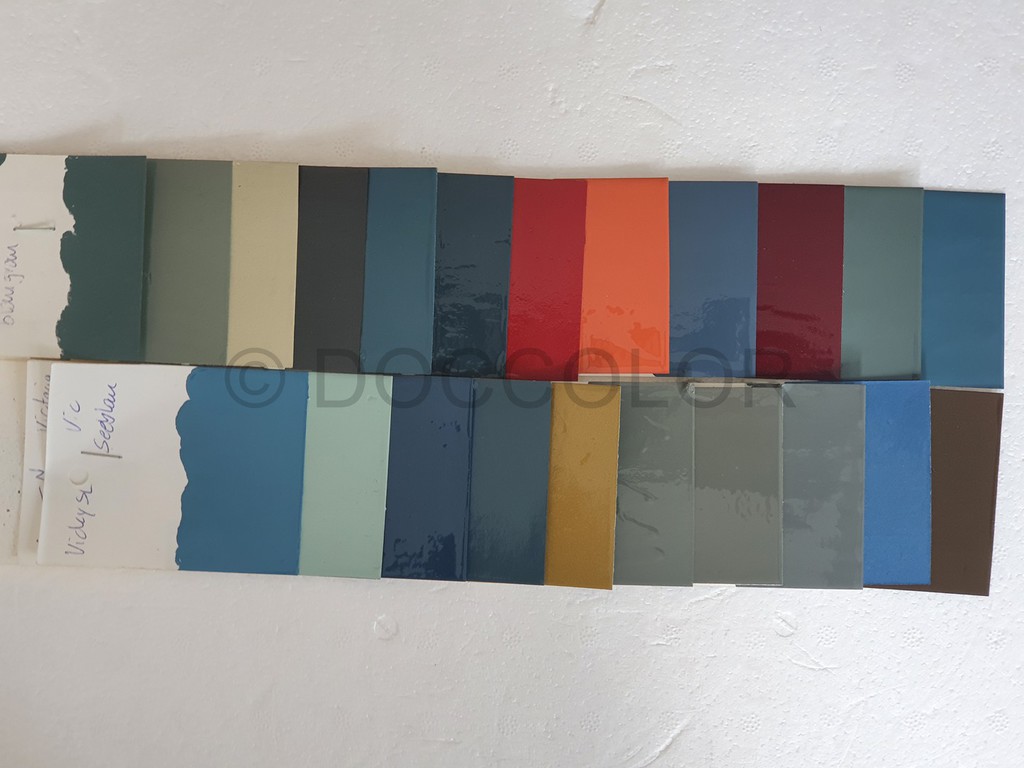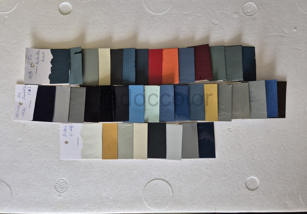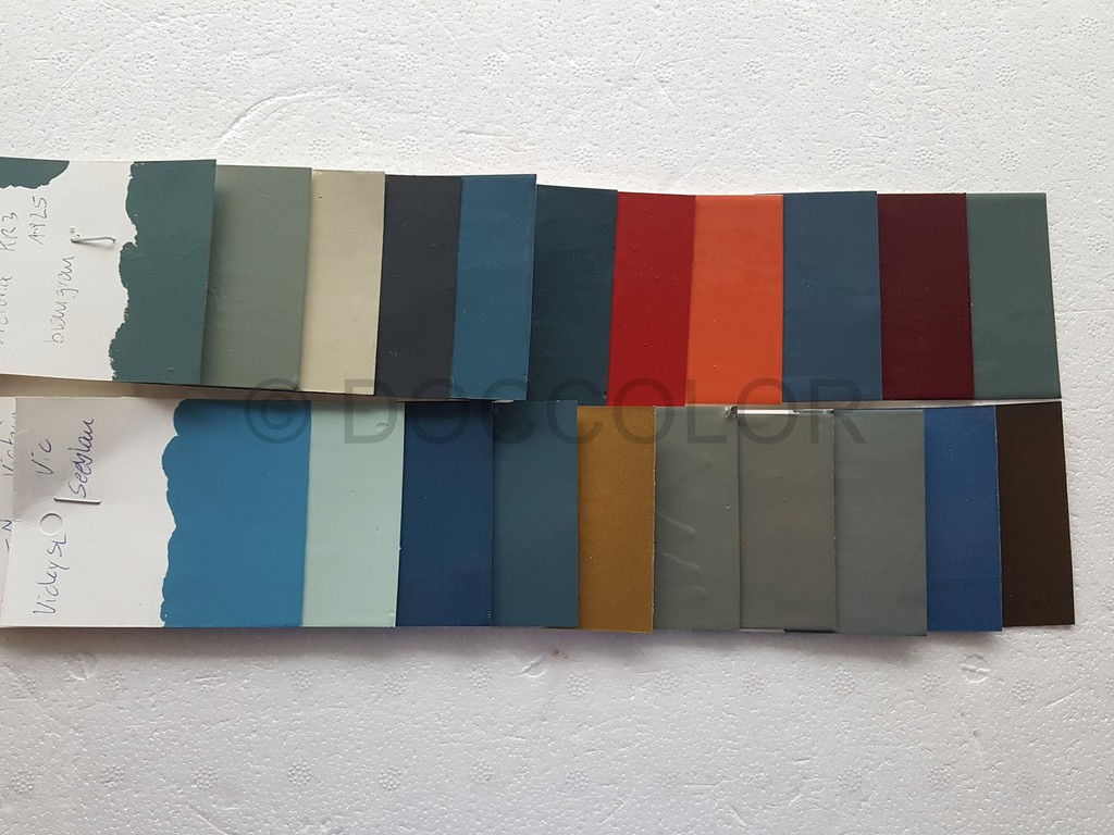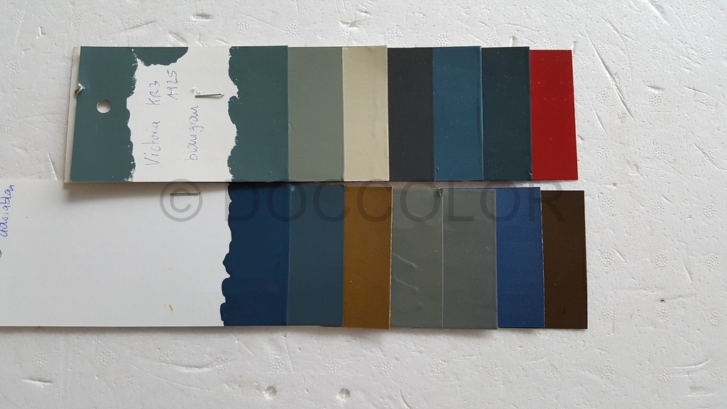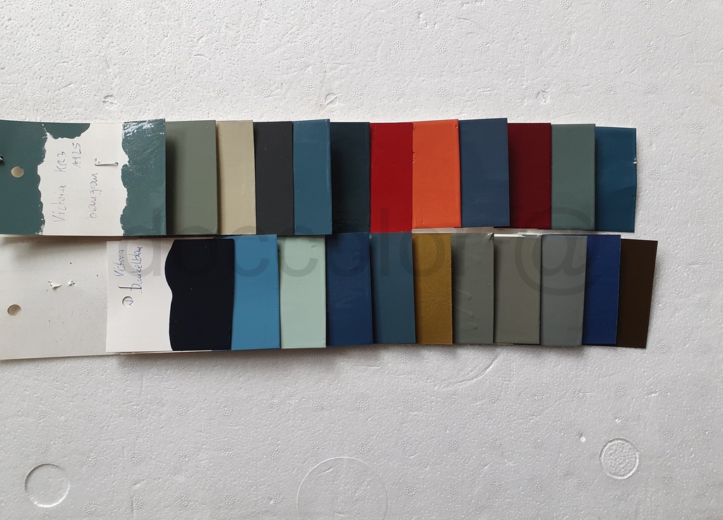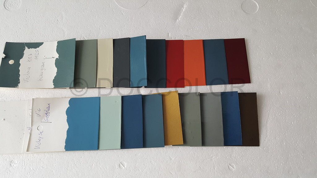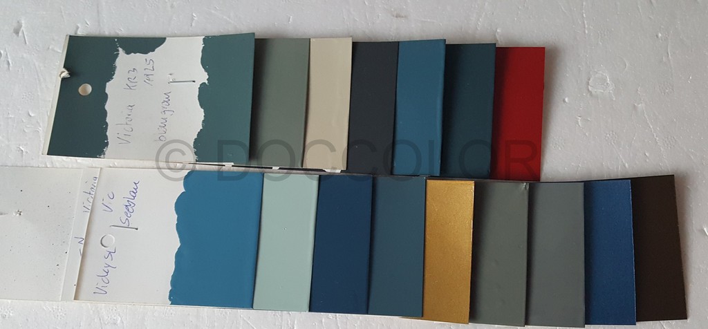 Taubenblau(Avanti), Blaugrau (KR3), Graugrün(350), Elfenbein(156), Antrazit(156), Taubenblau (VickyIII), Azurblau(V35), Avantirot, Korallrot, Lagoblau(Standard),Weinrot(KS125), Capri Variante,