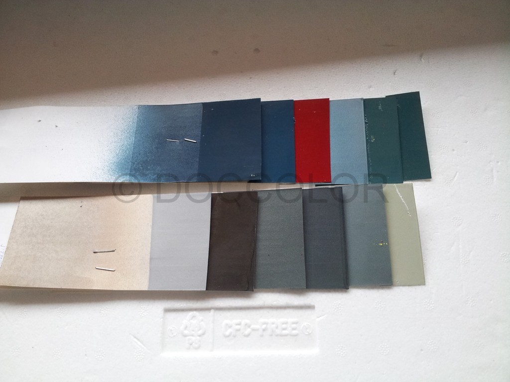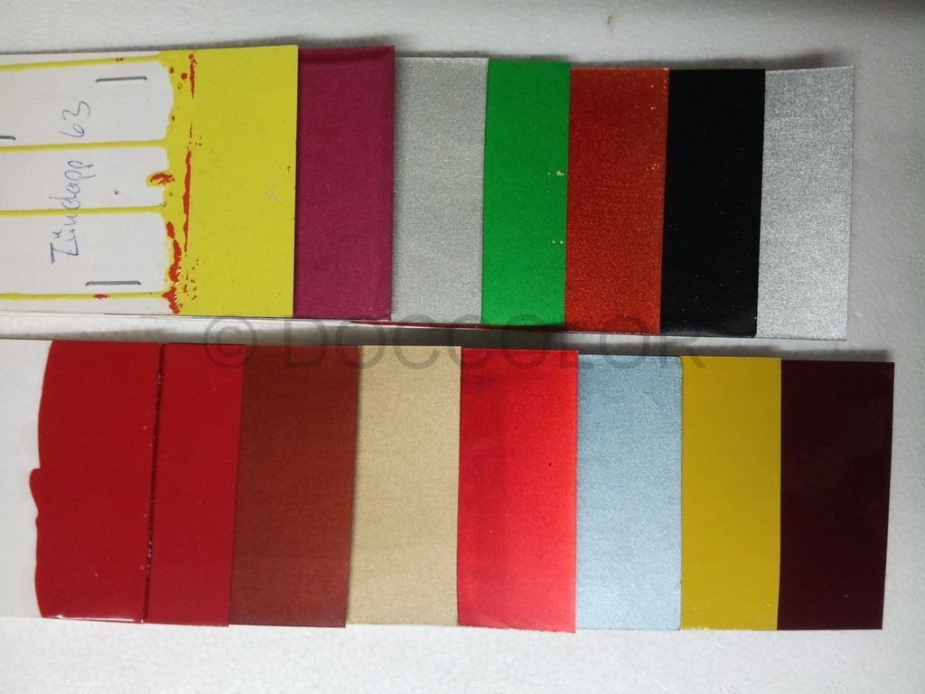 66 Metallicgrün alt, 66 Metallicgrün patina 561, 66 Metallicgrün 561-051, 66 Metallicgrün patina 529, 67 Goldorangelasur, 68 Schwarz matt, 69 Minzgrün, 70 Stratosilber, 70 Stratosilber fein, 71 Rubinrot, 71 Rubinrot(KS80), 72 Braunmet., 73 Felgengold, 74 Metallicrot, 76 Silberblau