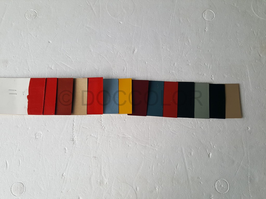43 Grau-Emaile, 49 Lilacmet., 52 Speedorange, 52 Speedorange(517), 53 Indianapolisgrün, 54 Moosgrün, 55 Polizeigrün, 56 Postgelb, 57 Natogrün, 58 Arizonagoldmet., 59 Titanblaumet., 60 Racingrot, 60 Racingrot II,