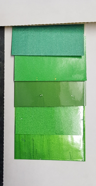 63 Lemone, 64 Syringarotmet, 65 Silber Chrom, 66 Metallicgrün Patina, 66 Metallicgrün neu,