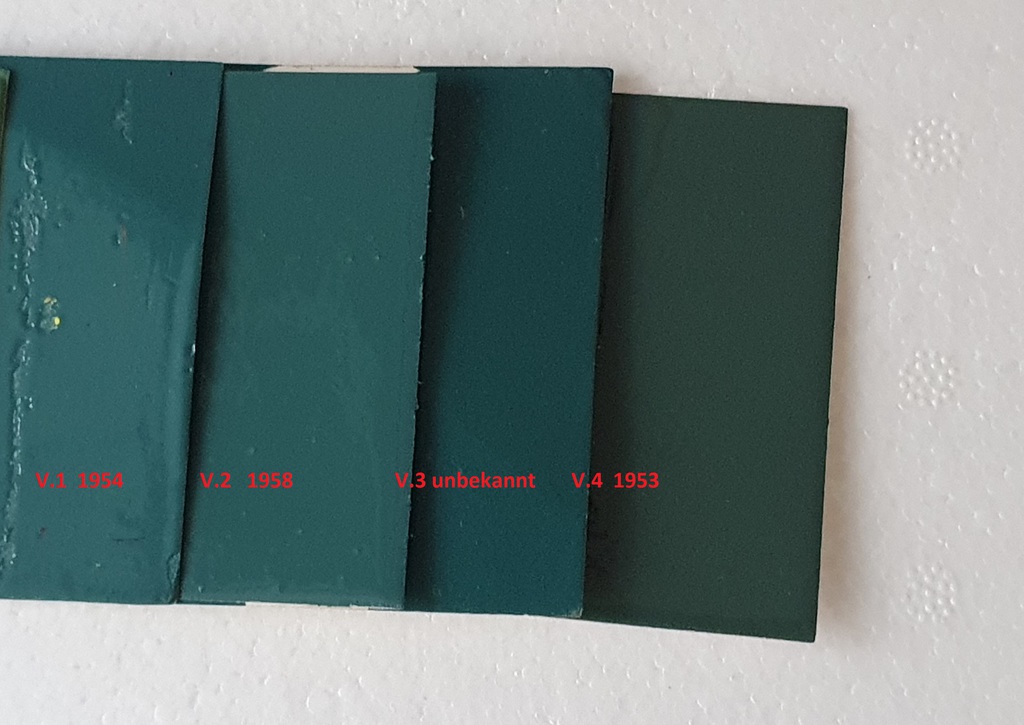 12 Metallglanzblau, 12 Metallglanzblau(Trophy), 13 Lindgrün(Varianten), 14 Lidogrün1 1954, 14 Lidogrün2 1958, 14 Lidogrün3, 14 Lidogrün4 1953,